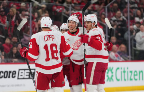 NEWARK, N.J. (AP) — John Gibson and Cam Talbot combined to make 31 saves, Dominik Shine scored his first NHL goal and the Detroit Red Wings beat the New Jersey Devils 3-0 on Sunday night.