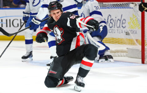 BUFFALO, N.Y. (AP) — Josh Doan opened and closed the scoring with power-play goals and the Buffalo Sabres outlasted the Tampa Bay Lightning 8-7 on Sunday night in a wild and feisty showdown for the Atlantic Division lead.
