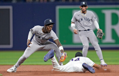 NEW YORK (AP) — Giancarlo Stanton stole his first base in the regular season since 2020 and had a go-ahead, two-run single to help the New York Yankees beat the Miami Marlins 9-7 on Saturday night for their first 7-1 start in seven seasons.