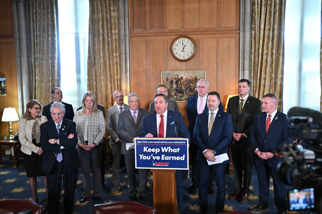 State Sen. George Borrello, R-Sunset Bay, speaks during a news conference held by Republican senators last week.